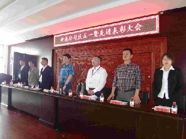 公司庆祝五一国际劳动节暨先进表彰大会于二O一四年四月二十九日在公司会议室召开。公司董事长兼总经理余飞先生出席会议并发表热情洋溢的讲话。公司行政总监、总经理助理胡家明同志主持会议,工会主席罗朝林同志致辞。
